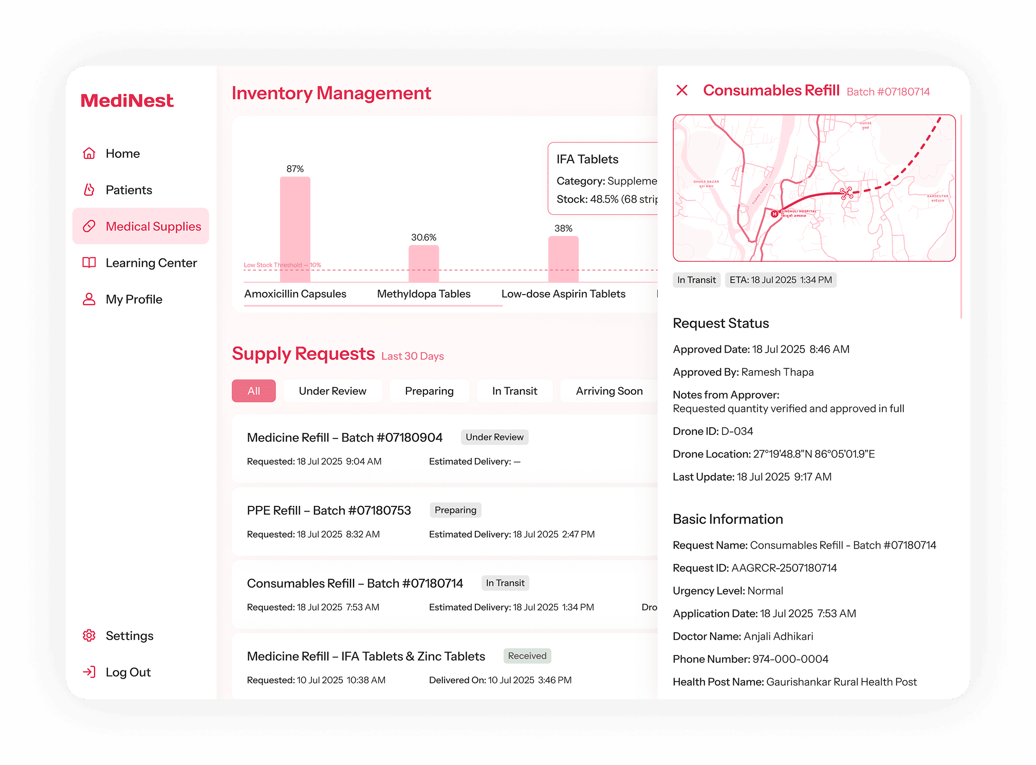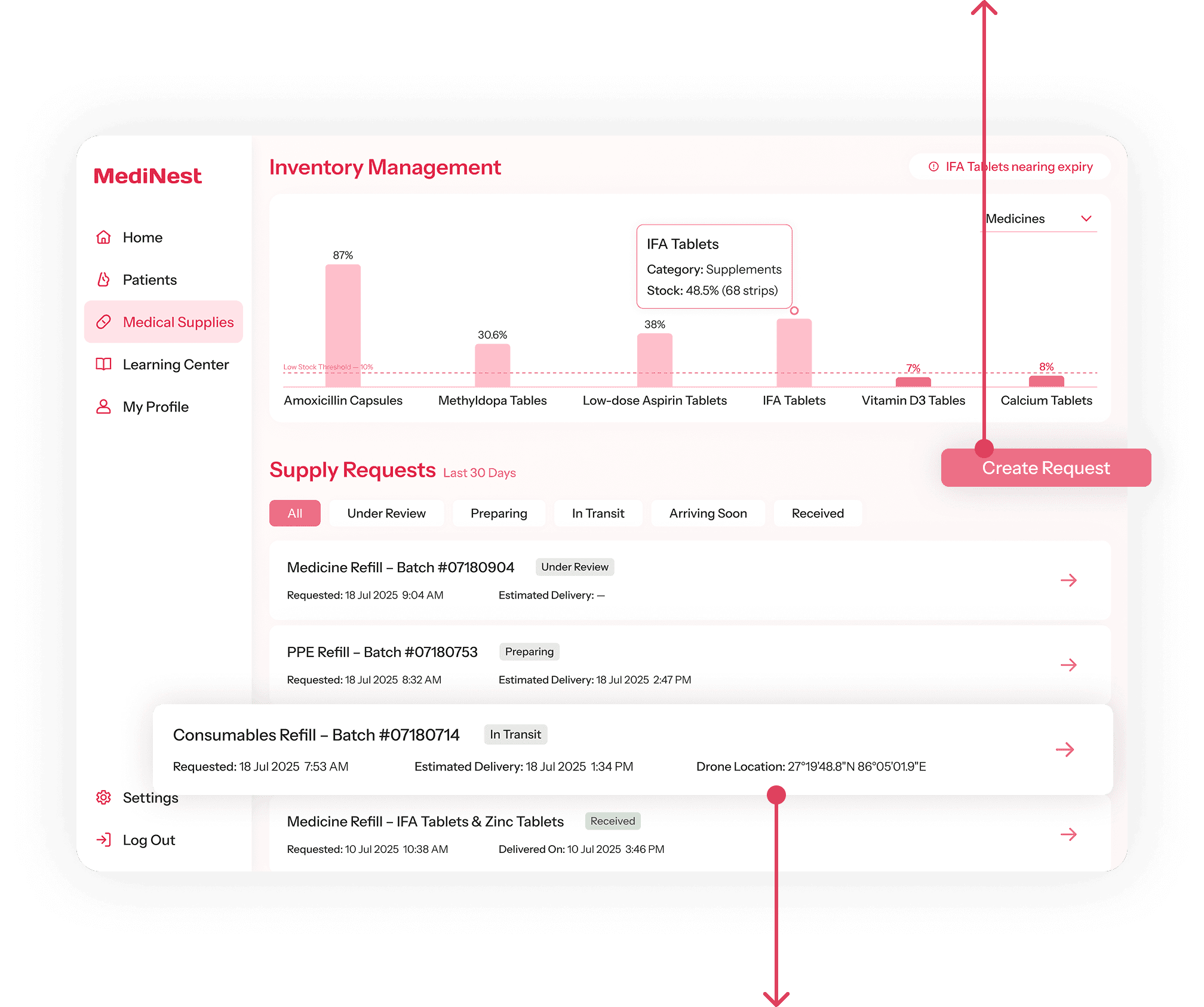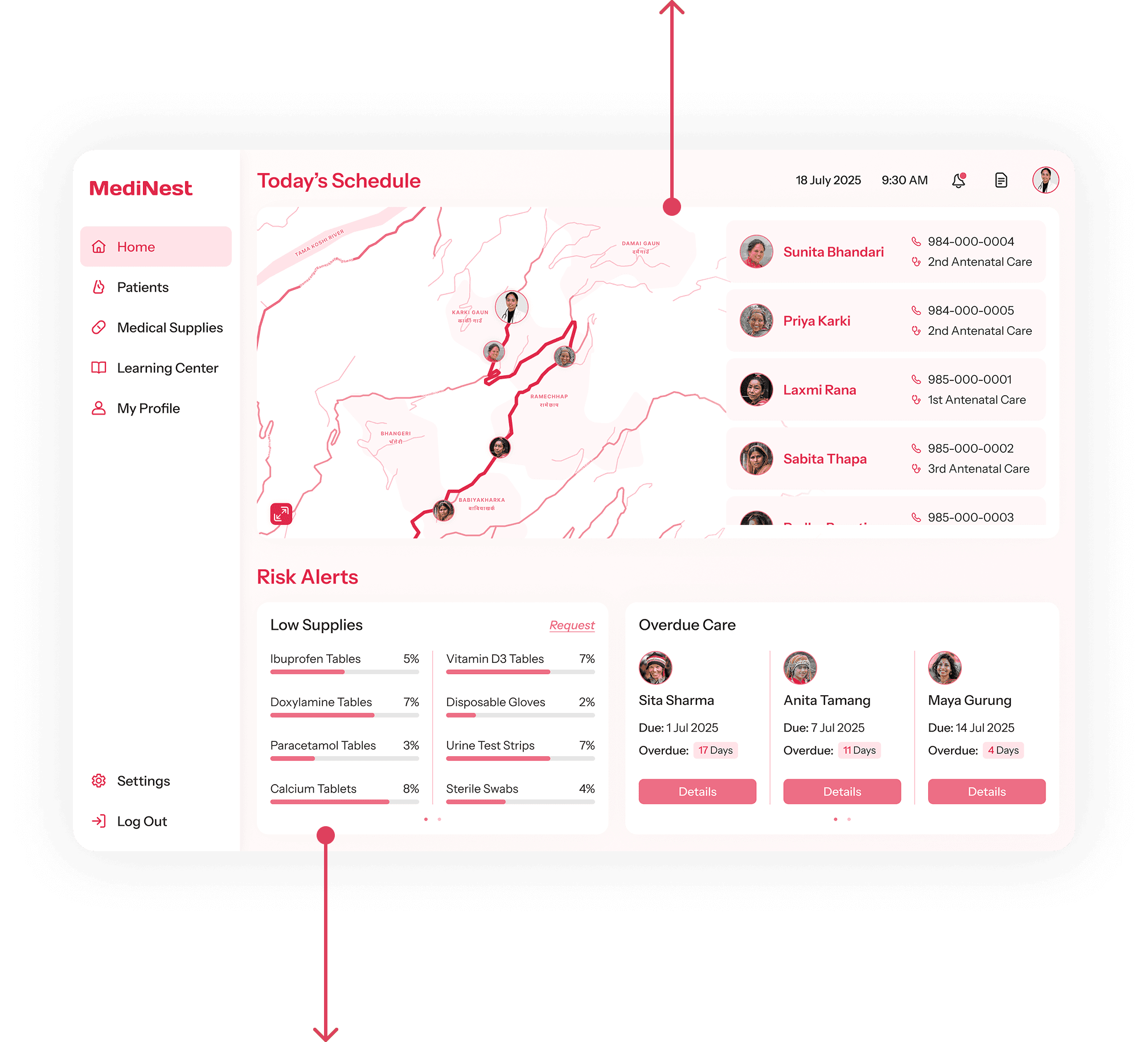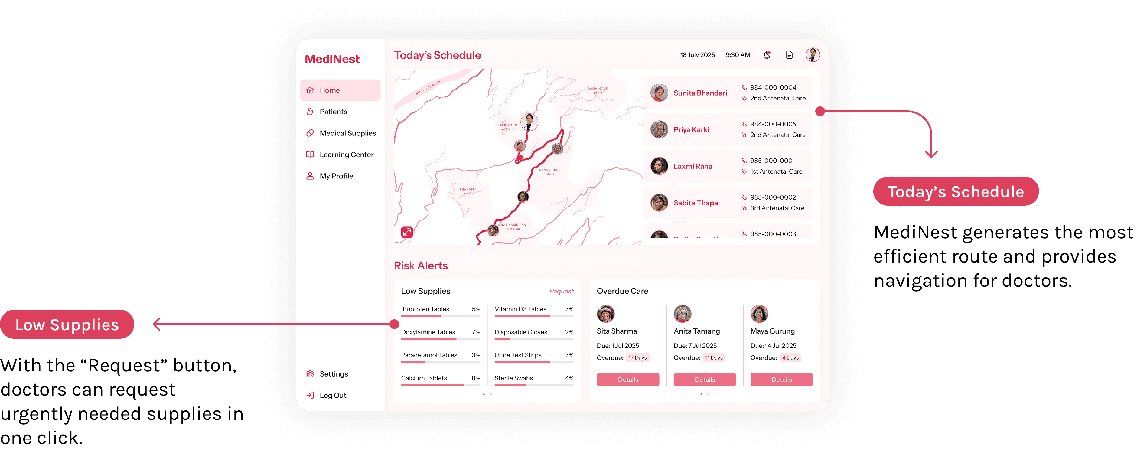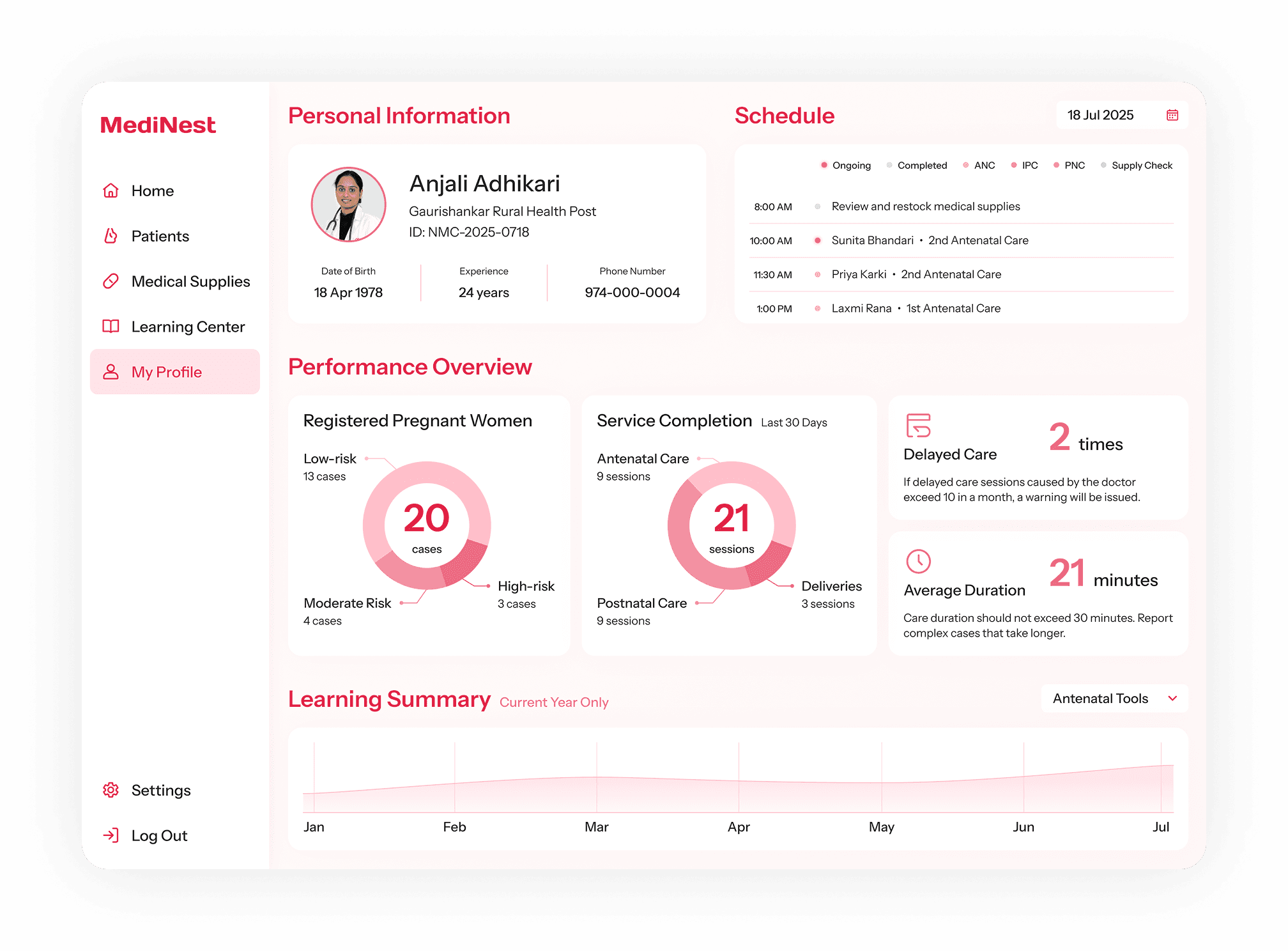 MediNest automatically records the usage of medical supplies whenever doctors log each maternity care session in the system. It updates and manages the inventory, helping doctors improve efficiency in medical supply management.
