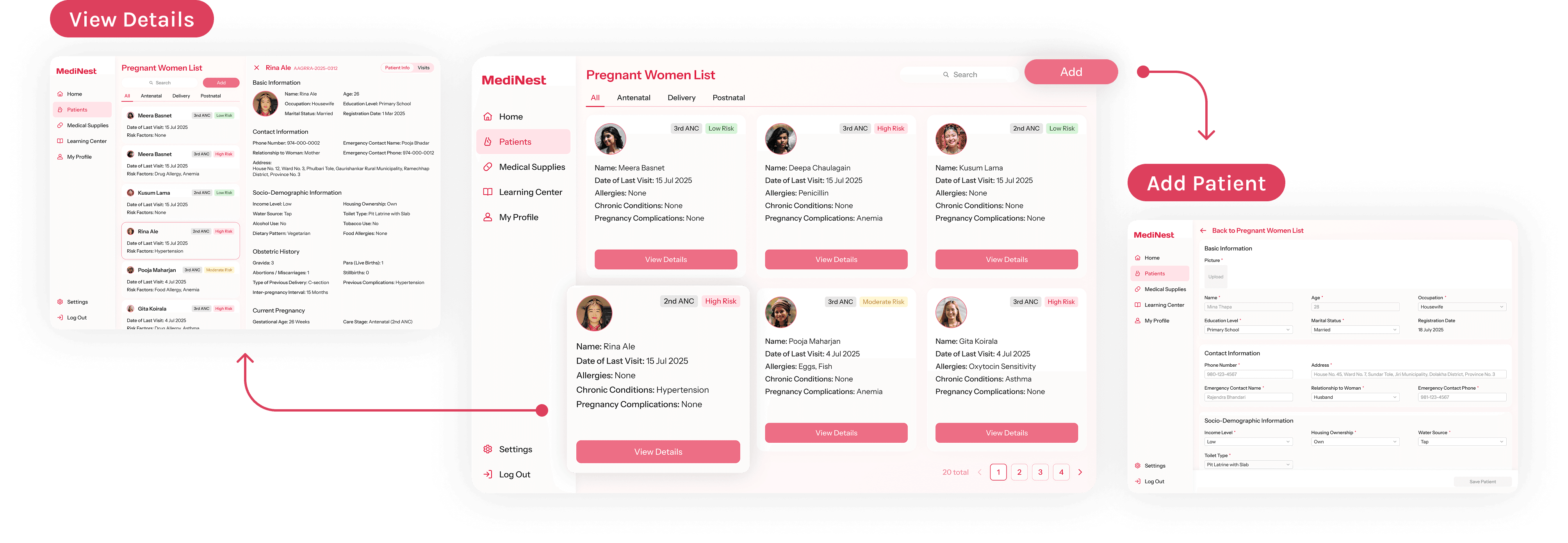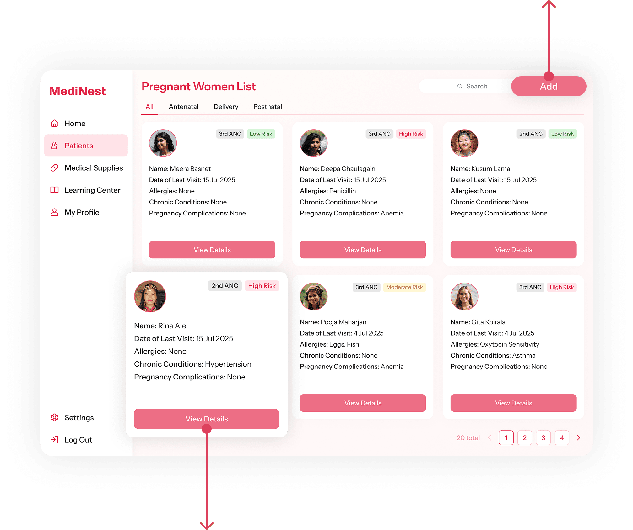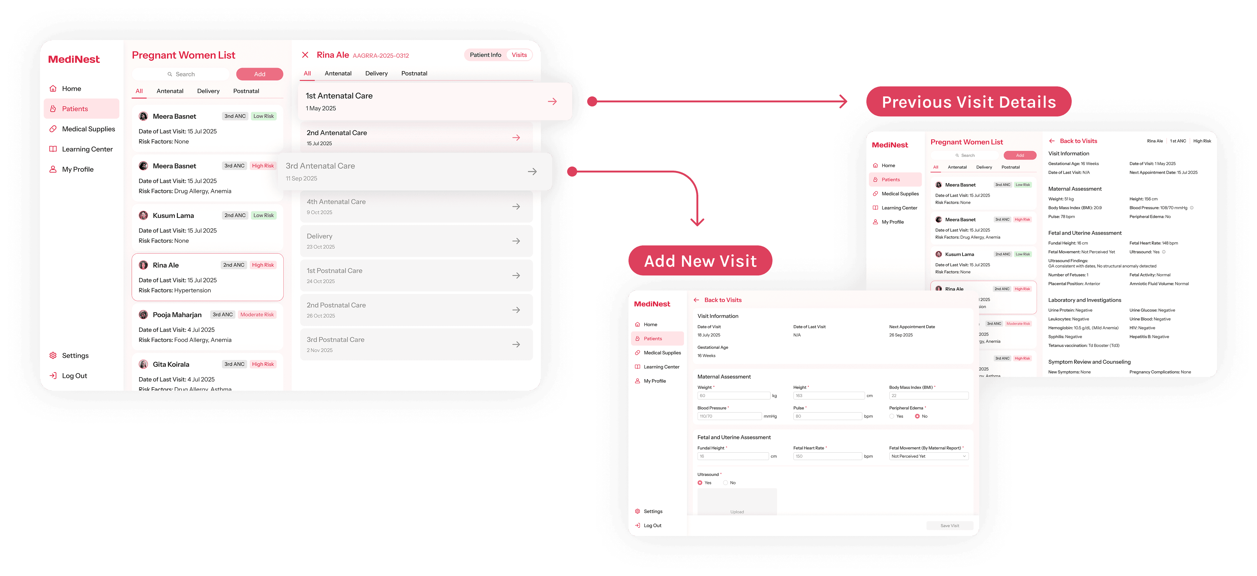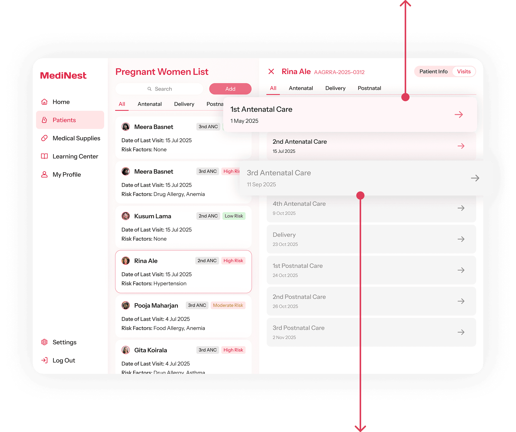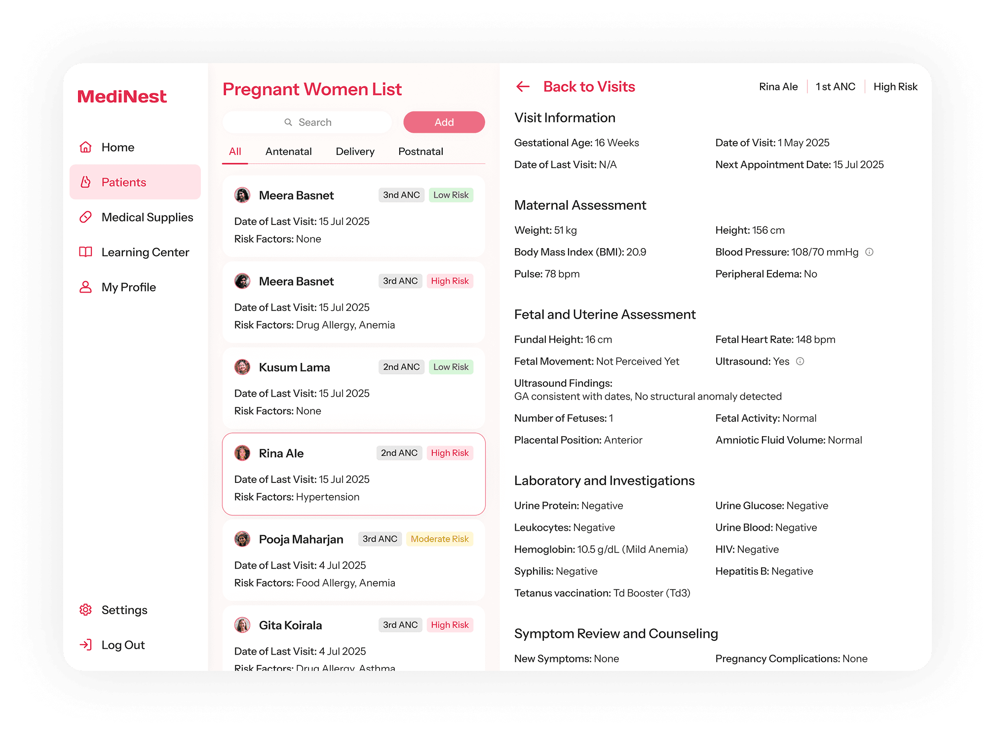 The “Pregnant Women List” allows doctors to track each patient’s maternity progress, with color-coded tags providing additional risk reminders.