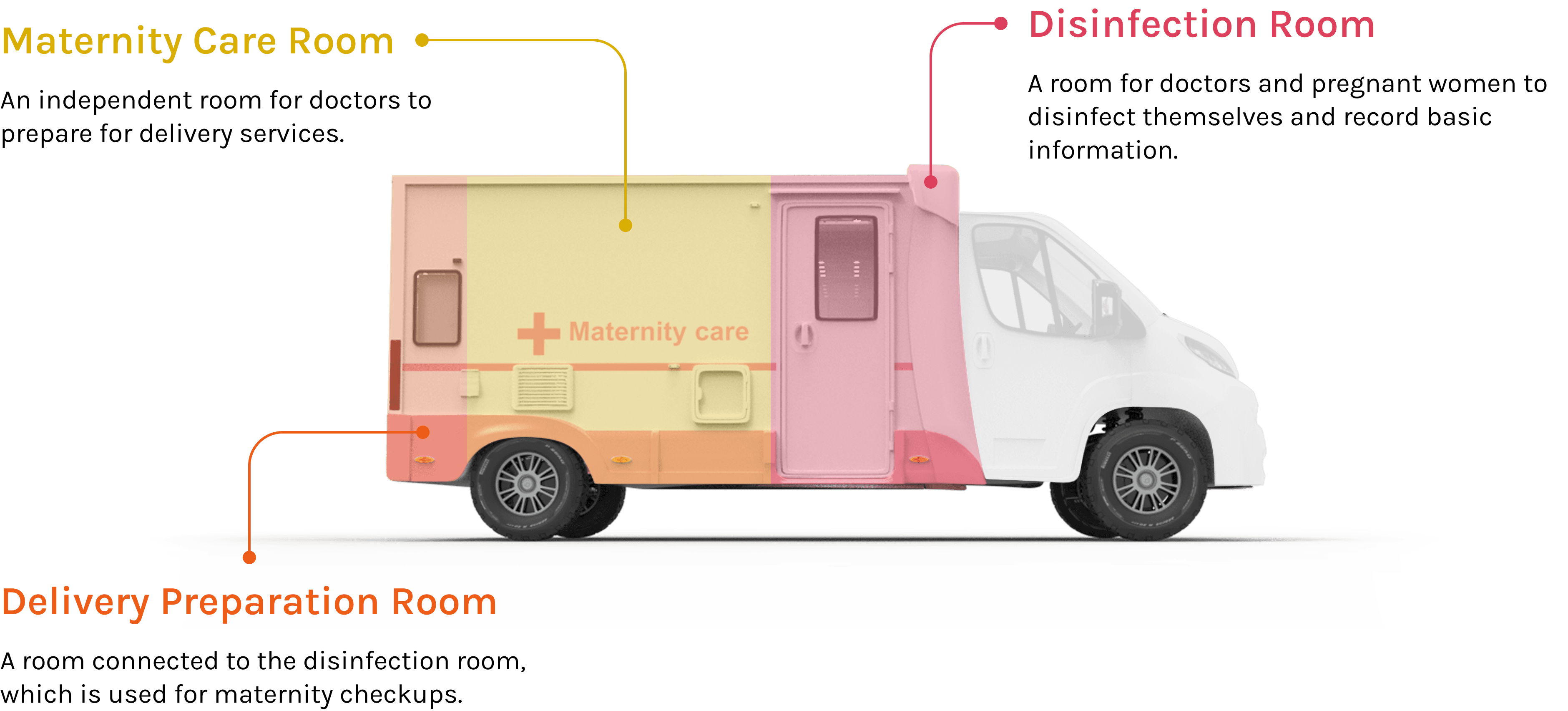 I redesigned an RV into a mobile clinic, equipping it with essential medical facilities for maternity care.