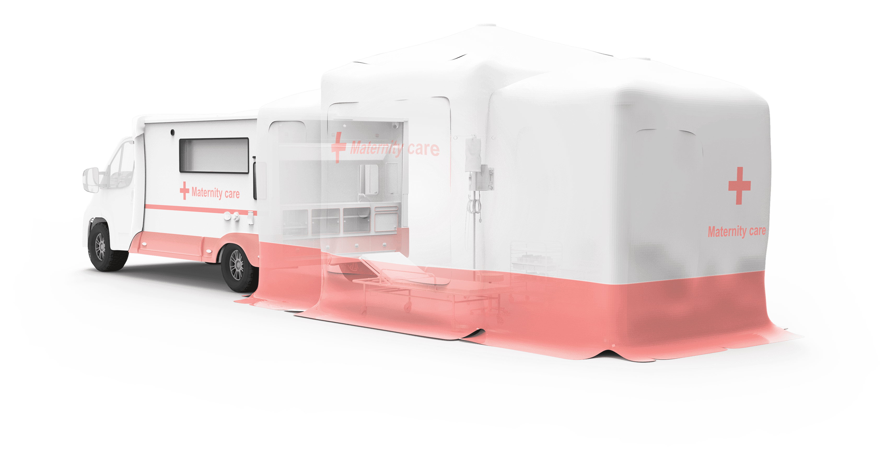 The rear of the mobile clinic connects to the tailgate tent, creating a space where doctors can provide delivery services to pregnant women.